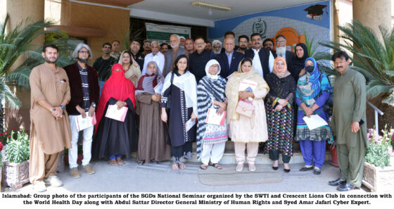 Therefore, continuing on the 21 st century plan and program of the United Nations is actually the guarantee of our independence and national development. He expressed these views while addressing the national seminar in connection with World Health Day organized by Department of Social Welfare Training Institute (SWTI) and Islamabad Crescent Lions Club. On this occasion, former Additional Director General FIA Cyber Expert Syed Amar Jaffri, Chief Executive