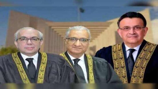 In an application, the federal government argued that Chief Justice Umar Ata Bandial, Justice Ijazul Ahsan and Justice Munib Akhtar should not hear the matter and a new bench be formed for the purpose. Justice Shahid Waheed and Justice Hasan Azhar Rizvi are the other members of the bench.