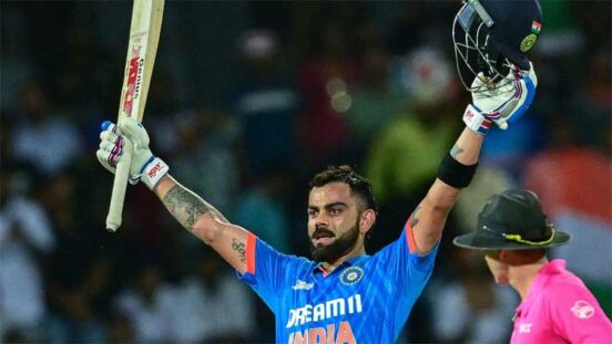 Virat Kohli scored 49th century of his career, equalling Sachin Tendulkar’s record of most ODI hundreds. He scored unbeaten 101 runs off 121 balls, helping his team to post 326 on the board.