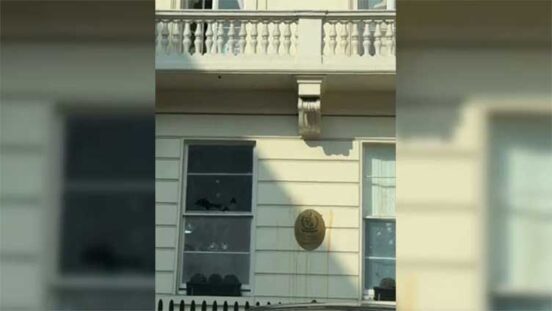 LONDON -UNS: Indians attacked and damaged the building of Pakistani High Commission in the British capital London on Sunday a day after a violent protest.