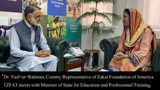 ISLAMABAD -UNS: Dr. Fazal Rahman, Country Representative Zakat Foundation of America (ZFA) visited Ministry of Federal Education and Professional Training and met with Minister of State for Federal Education and professional Training Ms. Wajiha Qamar. The discussion cantered around key areas like out of school children, girls’ education and youth empowerment.