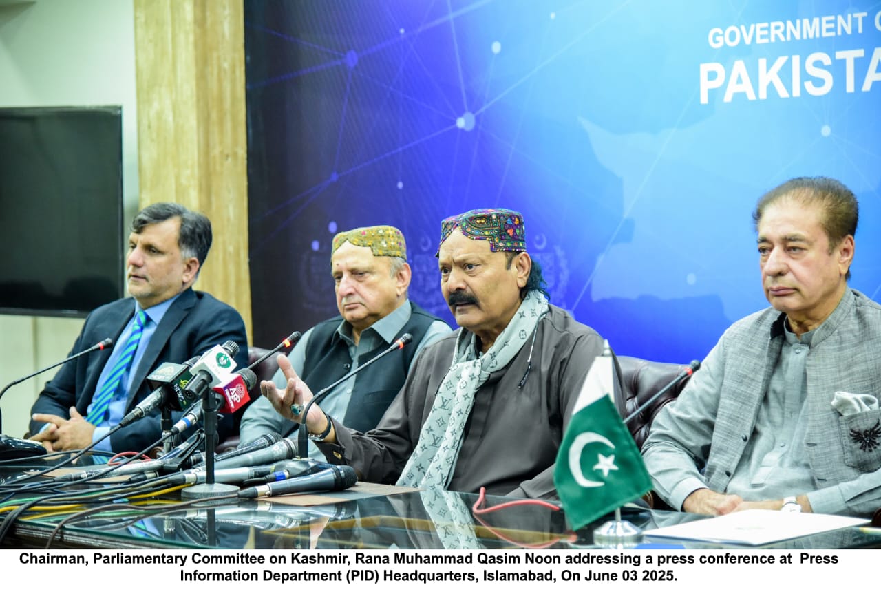 Rana Qasim Noon described Kashmir as the “jugular vein of Pakistan,” asserting that the issue is not merely a bilateral dispute but an internationally recognized dispute that should be resolved in accordance with the United Nations (UN) resolutions.
