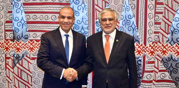 NEW YORK – UNS :Pakistan and Egyptian foreign ministers discussed the further enhancement of bilateral  relations in all fields. Deputy Prime Minister and Foreign Minister Senator Mohammad Ishaq Dar met with Foreign Minister of Egypt Dr. Badr Abdelatty on the sidelines of the International Conference on the Two-State Solution in New York and discussed matters of bilateral interest.
