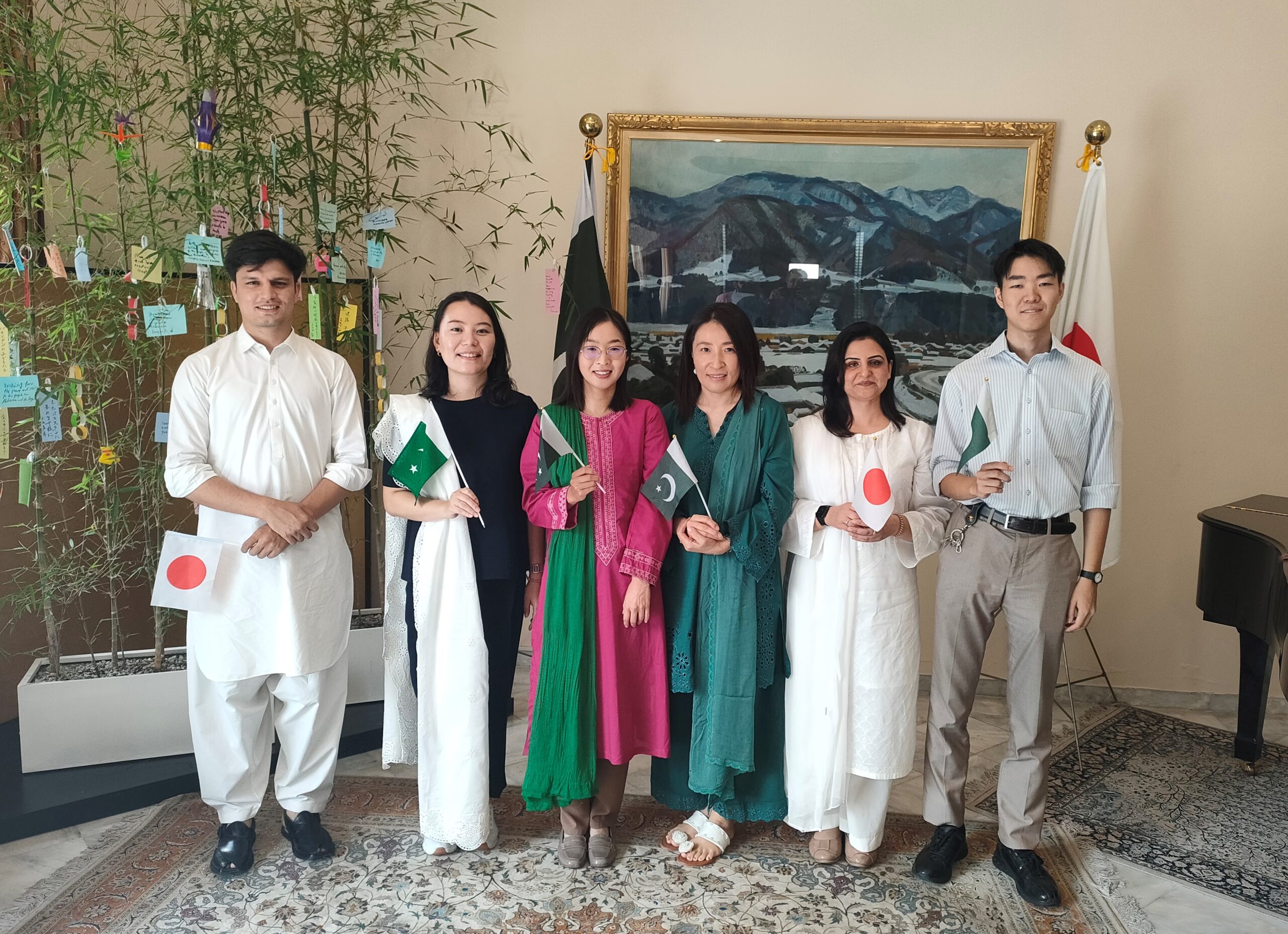 To mark this special festive occasion, Japanese and the Pakistani staff of the Embassy sang the iconic national song of Pakistan Jeevay Jeevay Pakistan to express their joy and solidarity with the people of Pakistan celebrating Independence Day festivities.