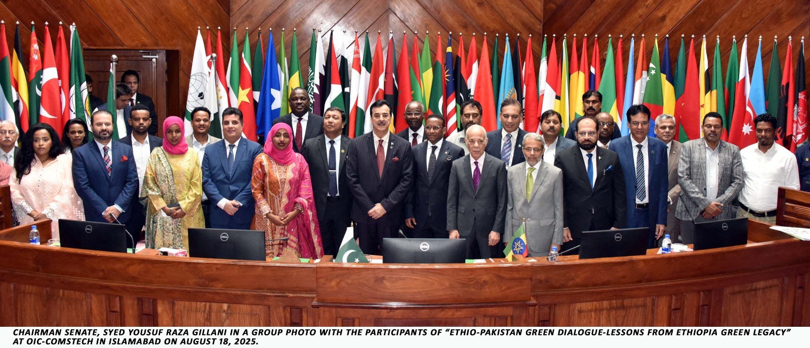 Islamabad -UNS:Chairman Senate Syed Yousaf Raza Gilani has said that climate change is an urgent reality and despite contributing less than one percent to global emissions, Pakistan is among the most climate-affected countries, facing floods, glacial melt, and droughts. He expressed these views while addressing the “Ethiopia–Pakistan Green Dialogue: Lessons from Ethiopia’s Green Legacy” at the COMSTECH Auditorium, Islamabad on Monday. The OIC Standing Committee on Scientific and Technological Cooperation (COMSTECH), in collaboration with the Embassy of the Federal Democratic Republic of Ethiopia, organized the dialogue.